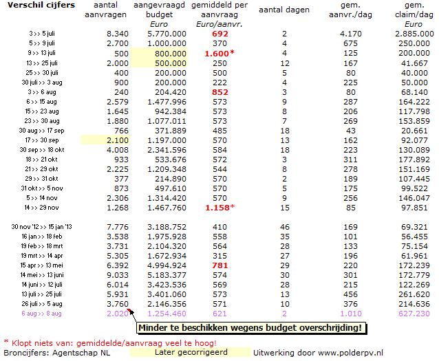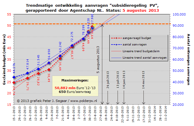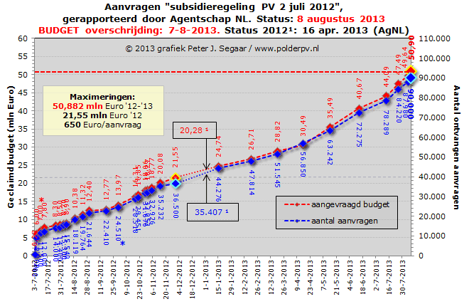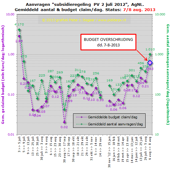 Tabel en grafieken verloop aanvragen en budget (status 8 augustus 2013)