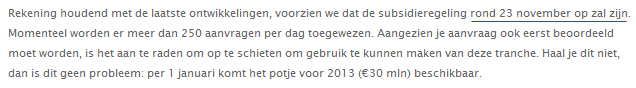 Subsidie Regeling zeer rappe eindspurt: overtekend (8 augustus 2013)