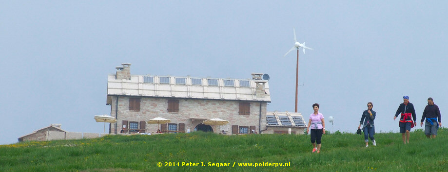 De - nogal luidruchtige - kleine windturbine naast de hut was van het type "it-e Vergy", onderdeel van de in Zermeghedo (VI) zetelende firma itAutomation S.r.l. (dochter itWind). De website van (de windtak van) het bedrijf lijkt nog niet functioneel. Over opbrengsten is niets bekend, het apparaat stond flink te draaien, maar het is dan ook een goede lokatie aan het hoge eind van een relatief vlak, groot, en hoog gelegen plateau.