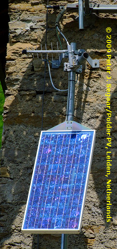 | <<< "Speelse" configuratie van 3 byzondere monokristallijne modules van onbekende herkomst. Polder PV's Triodos fotoprijsvraag inzending komt van dit dak van een kleine agrariër, Cantoniera di Maesimo (1.560 m.), bezuiden de Piani di Artavaggio. | |