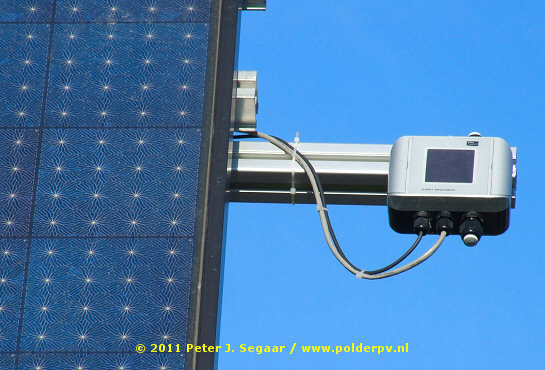 De prestaties van de tracker worden uitgelezen en vergeleken met de instraling in het module vlak. Daartoe is een zogenaamde Sensorbox van Duits omvormer fabrikant SMA aangebracht die de instraling meet. Ik ben erg benieuwd wat er voor specifieke (norm) opbrengst wordt gehaald met astronomische tracking op deze zuid-Nederlandse lokatie. Ongetwijfeld zal de top referentie van het nabijgelegen testveld van PHOTON (zie verderop) een mooie basis zijn om te kijken hoe goed deze Hollandse uitvinding het wel niet blijkt te doen...