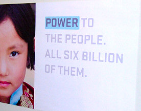 American thin film specialist Applied Materials had some very catchy solar energy advertisement texts on their Intersolar 2008 stand. There is more truth and justice in these few words than most of those six billion people or the politicians that boast to "represent" them realize...
