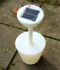 gemaakt. De zonnecellen bestaan ook weer uit scherven, in plastic