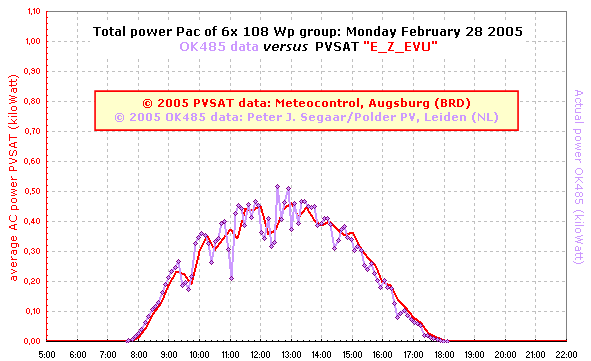 Op deze pagina worden sommige belangrijke resultaten gepresenteerd van het PVSAT-2 project, deels in relatie met de eigen metingen m.b.v. het OK485 data interface (directe uitlezing van de OK4E omvormers), voor de zonnige 28e februari 2005 (zie ook dagcurves met andere systeemvariabelen op de web pagina dagcurves_28feb05.htm). Deze pagina wordt verder in de Engelse taal gepresenteerd om de informatievoorziening ook voor buitenlandse PVSAT gebruikers en andere geïnteresseerden toegankelijker te maken.