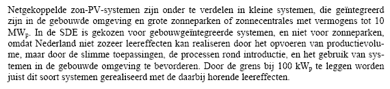 van dit mede "ter bevordering van kleinschalige zonnestroom" geschreven