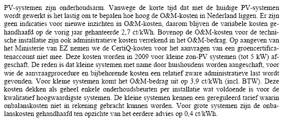 uit de hele rapportage komende cijfers voor het definitieve "advies" van ECN/KEMA. Waar EZ nog steeds aan kan gaan zitten