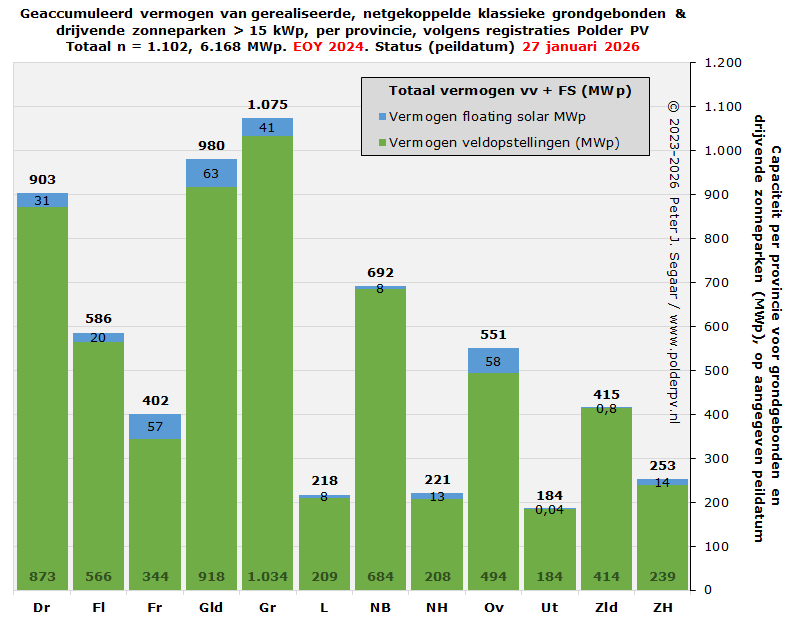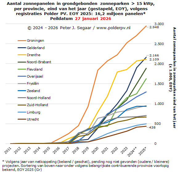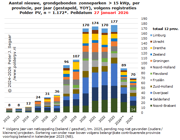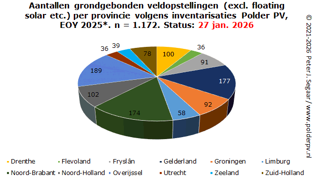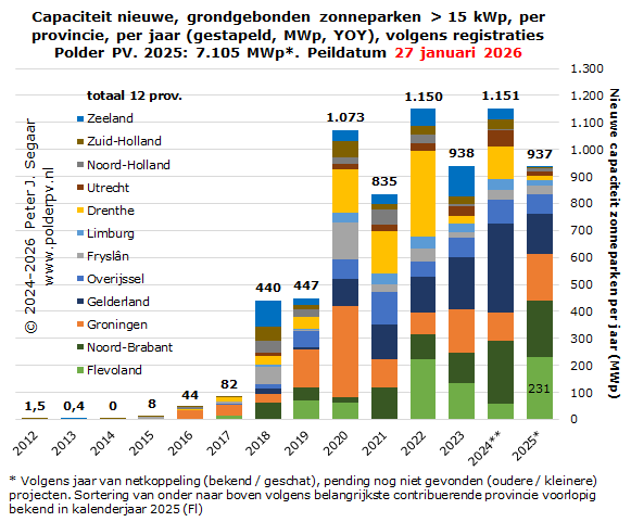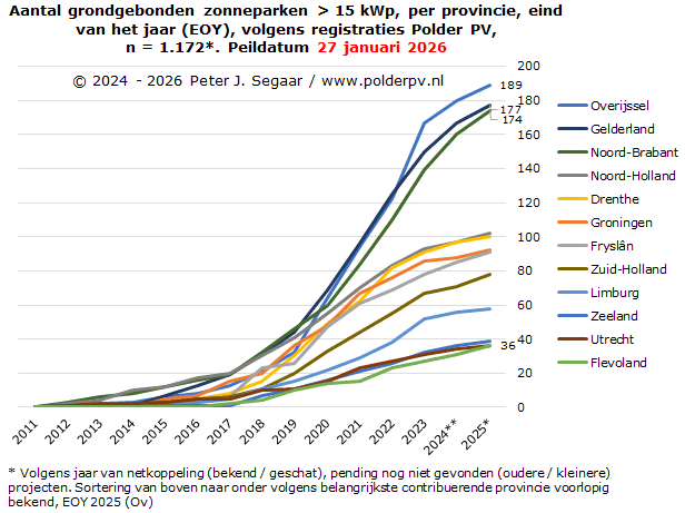 Meer dan duizend zonneparken in Nederland, 6 GWp waarschijnlijk al overschreden (14 januari 2025; voorlaatste overzicht zonneparken in Nederland door Polder PV, met uitgebreide detail analyse gelinkt, alhier)