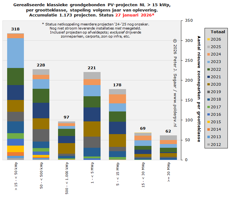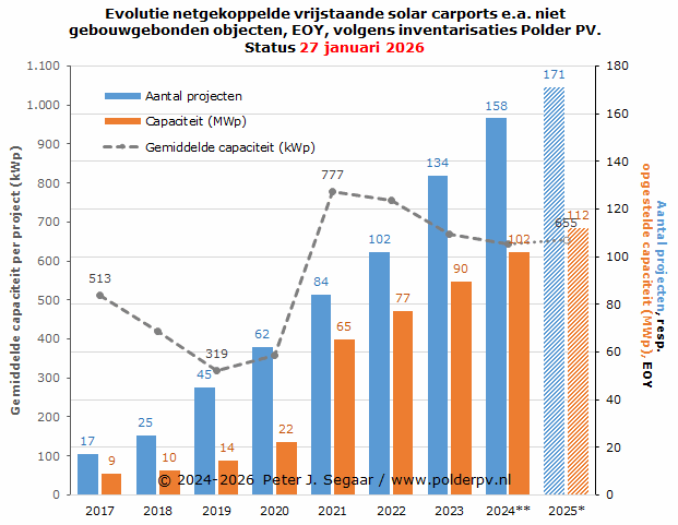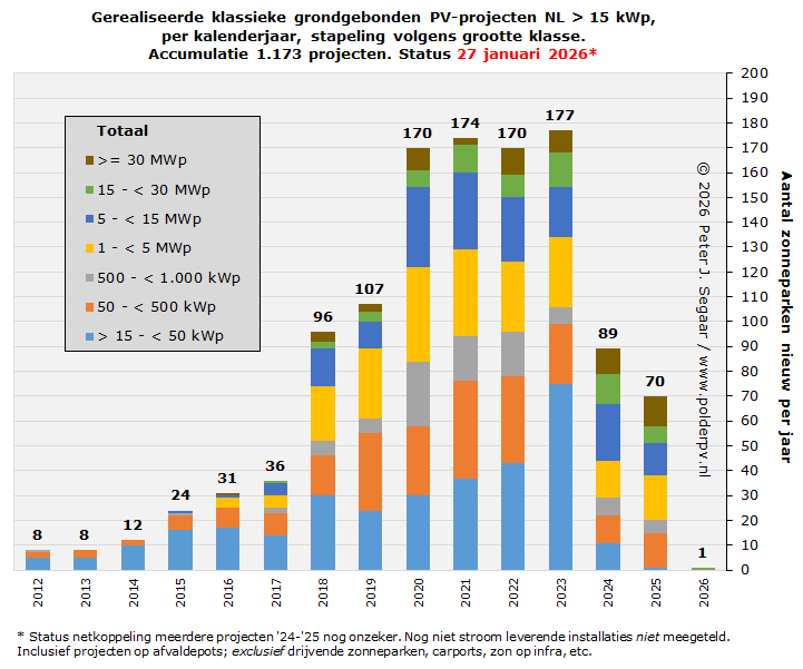 Voor 2026 is nog maar 1 netgekoppeld zonnepark bekend, in een volgende update krijgen we meer zicht op de evolutie van de project volumes in dit nieuwe jaar.