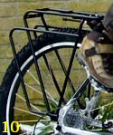 Zeer robuuste achterdrager voor tassen vol met extra brandstof (biovoedsel), dak-boven-het-hoofd, en stapels topografische kaarten |
