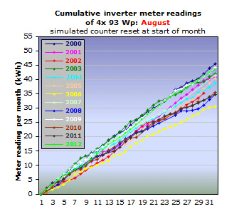 van de tegenvallende maand maart van 2001 uit (de 6x 108 Wp panelen