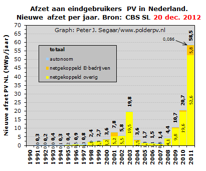 in 2012 (voorlopig getal) al 230 MWp nieuwbouw. Zo'n beetje