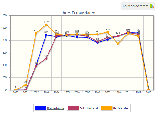 Zonnestroom productie 2012 (voorlopige data, blauw) t.o.v. productie 2011 (rose). Rechts gemiddelde per maand. Een spectaculaire toename van de productie met name in de maanden mei tot en met september 2012. De opgegeven producties zijn: 2010 11,683 TWh, 2011 19,340 TWh (+66%), 2012 (voorlopig) 27,600 TWh (+43%). De productie voor 2012 zou vergelijkbaar zijn aan de jaaroproductie van bijna 7 Borssele kernsplijters. Gezien de record bijbouw in 2012 (7,63 GWp volgens eerste berichten, nog niet bij Bundesnetzagentur gepubliceerd), gaat dat natuurlijk nog veel meer worden in 2013.