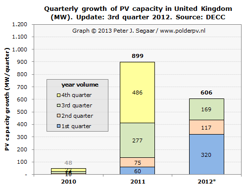 voor 2009-2011 volgens CBS cijfers 10,3, 20,2, en 58,5 MWp (2012: