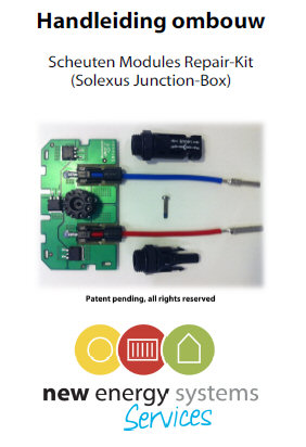 22 augustus 2013 + toevoegingen 23, 29 & 31 augustus: ... maar New Energy Systems was ook al klaar en had toestemming. De wereld is klein. Ik had het vorige bericht nog nauwelijks geplaatst, of New Energy Systems twitterde loud and clear dat ook zij al aan de gang mochten gaan met de door hen gepresenteerde oplossing. Na telefonisch contact met CEO Peter Debeije kreeg ik zelfs de handleiding toegestuurd waarin nauwgezet staat beschreven hoe, uitsluitend uit te voeren door professionele "solar" installateurs, de Solexus junction box van Alrack op de getroffen Scheuten Solar module series (aangegeven door NVWA, zie bericht) moet worden voorzien van een nieuwe print met veilige aansluitingen.