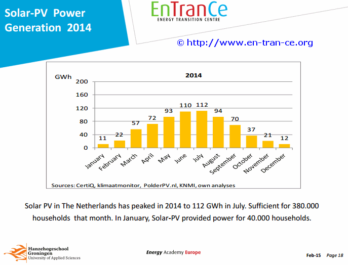De cijfers over onze PV markt blijven "shaky", gezien het "cijfer incidentje Almelo". Er is nog steeds veel te doen. Over de stroom productie, waar ik het in het interview ook over heb gehad, en waar, ondanks "moedige pogingen" om die af te schatten door het recente initiatief EnTranCe van Hanzehogeschool Groningen, feitelijk uitzonderlijk weinig harde data van bekend zijn, ging het in de samenvatting al helemaal niet meer. Dat had ook een brug te ver geweest, want als de basis al slecht is (1 - hoeveel zonnepanelen liggen er überhaupt in NL, 2 - op hoeveel adressen liggen al die zonnepanelen, 3 - hoeveel afzonderlijke installaties betreft dat, en 4 - hoeveel vermogen in MWp betreft dat dan allemaal wel?), hoeven we het over de vermeende stroomproductie uit al die installaties al niet eens meer te hebben. Dat is helemaal gokken de ruimte in, met alle mogelijke variabelen waar je dan ook nog eens rekening mee moet houden. En die eigenlijk snoeihard gemeten dienen te worden, niet "afgeschat".