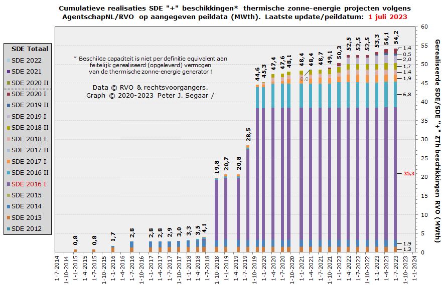 Daar staat tegenover, dat ik de laatste tijd veel grotere projecten op satelliet- en luchtfoto's tegenkom, waarbij de PV generator al langere tijd op het dak of op de veldopstelling ligt, maar een "ja" vinkje bij de SDE beschikking(en) bij RVO zeer lang op zich laat wachten. Dit is een zeer duidelijke indicatie, dat er fikse vertragingen bij de netaansluitingen bij dergelijke grote, hoge impact hebbende projecten, optreden. M.a.w., projecten die aan het eind van het jaar wel al een complete generator hebben, maar die nog niet zijn aangesloten aan het net, zullen pas in het opvolgende jaar in de statistieken gaan verschijnen.