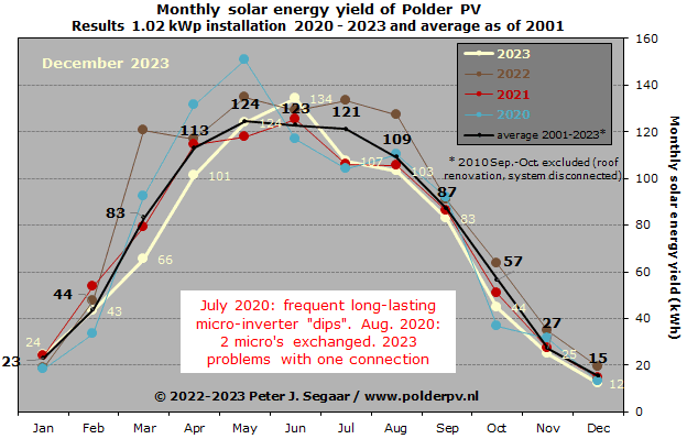 In de productie curve is goed te zien dat de zogenaamde "winter-dips" ook op een steeds hoger niveau komen te liggen, a.g.v. de almaar toenemende productie capaciteit, die ook in de winter aan een toenemende hoeveelheid zonnestroom productie bijdragen. In deze laatste update blijkt december 2022 ook alweer een wat hoger volume te tonen, dan in de januari tm. april rapportages. December 2022 komt inmiddels uit op 133,5 GWh. Dat is al 10,9% hoger dan in december 2021 (120,4 GWh), en is zelfs al een factor 4,5 maal het niveau van de "dip" in het winterseizoen van 2017/18 (jan. 2018 29,8 GWh, zie eerder gepubliceerde historische grafiek). De verwachting is dat met name de recentere maand productie cijfers later nog opgeplust zullen gaan worden.
