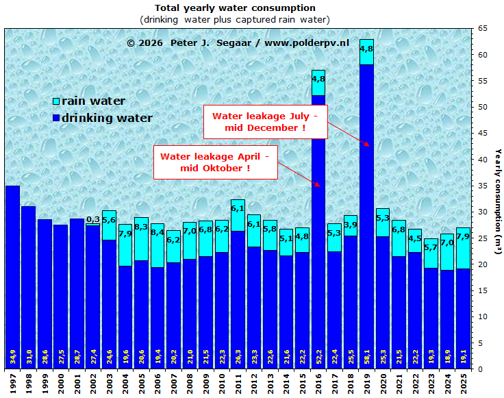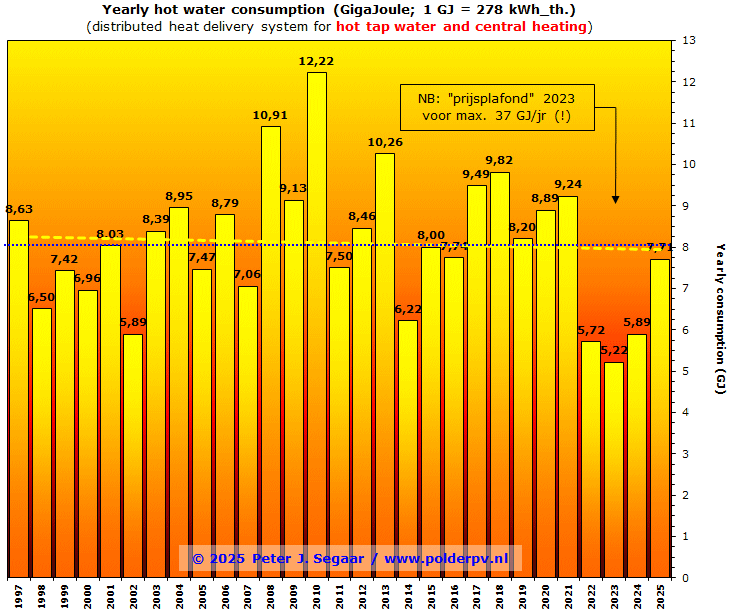 De cumulatieve jaarproducties van de drie hoogst (2003, 2022 en, inmiddels compleet, 2025), en 2 slechtst presterende jaargangen (2024, 2023) zijn rechtsboven naast de Y-as weergegeven, om een indruk van de spreiding te geven.