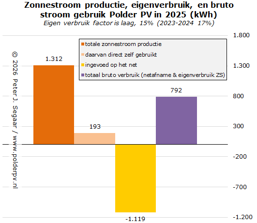 2024 heeft, helaas "met stip", 2023 in negatieve zin overtroefd, en kwam, door een combinatie van structurele problemen met de oude installatie, en het beslist niet meewerkende weer door het jaar heen, tot en met december bij de productie op een nieuw laagte-record, 806 kWh (gemiddelde over alle jaren: 922 kWh).