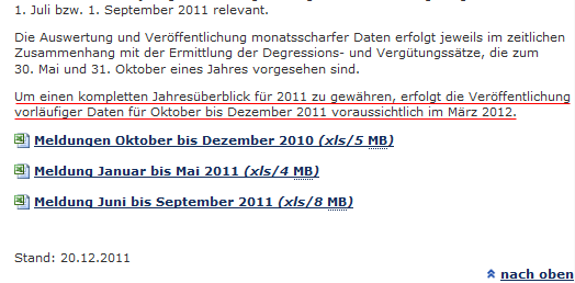Jammer is ook dat we pas in maart 2012 de eerste harde cijfers over de werkelijke aanmeldingen bij Bundesnetzagentur zullen gaan zien (zie bericht van 21 december 2011).