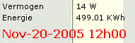 24 december 2005: Nieuwe metertarieven NUON Monitoring per 1-1-2006. Er is nogal wat over die meters te doen geweest, vooral over het forse verschil in prijsstelling tussen de meters met teruglevertelwerk en de productiemeters die voor MEP-bemetering (van grotere zonnestroomsystemen). NUON Monitoring (het meetbedrijf wat onder de NUON koepel zit, maar formeel een aparte business-unit is omdat de metermarkt "vrij" is) heeft blijkbaar goed naar de kritiek geluisterd, en heeft bij een overleg op 14 september 2005 met de Werkgroep Zonne-energie Fryslân nieuwe tarieven gepresenteerd. Zoals weergegeven op de nieuwe website van de Werkgroep in de rubriek "Laatste nieuws". Prijzen zijn in EURO, inclusief 19% B.T.W.: